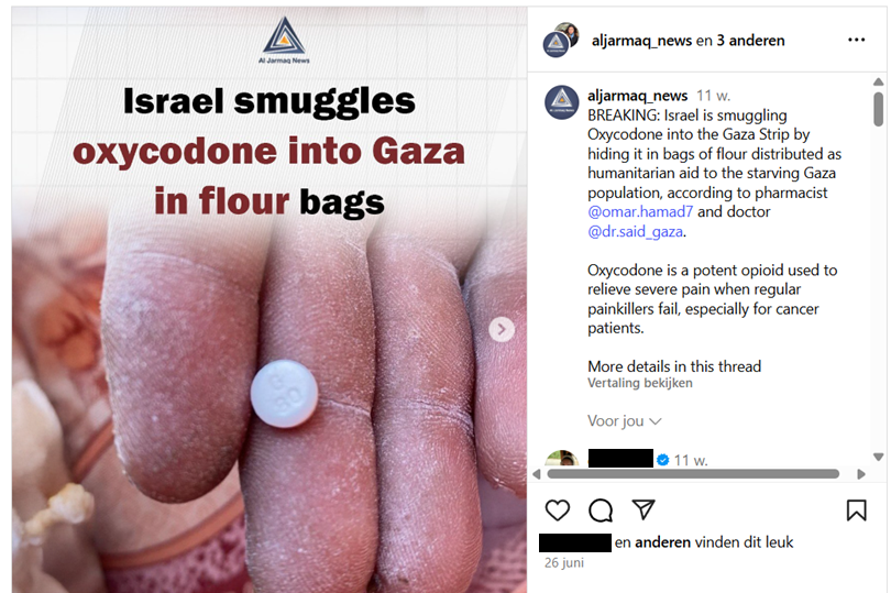 Ook met de echtheid van ander beeldmateriaal in Gaza blijft het oppassen. Zo circuleerden onder andere op Instagram video’s en foto’s dat Israël de drugspillen Oxycodone het land zou binnensmokkelen door ze te verstoppen in bloemzakken.