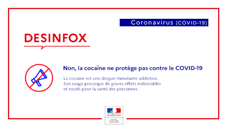 Tot slot een van de meest verontrustende valse claims die online circuleert: cocaïne zou COVID-19 genezen. Een artikel van de nieuwswebsite Business Insider France ontkracht dit broodjeaapverhaal en ook RTBF Info en The Washington Post bestempelen het gerucht als valse informatie. Eerder had het Franse ministerie van Volksgezondheid al een tweet de wereld ingestuurd om deze desinformatie tegen te gaan nadat het heel hard circuleerde op Franse sociale media.